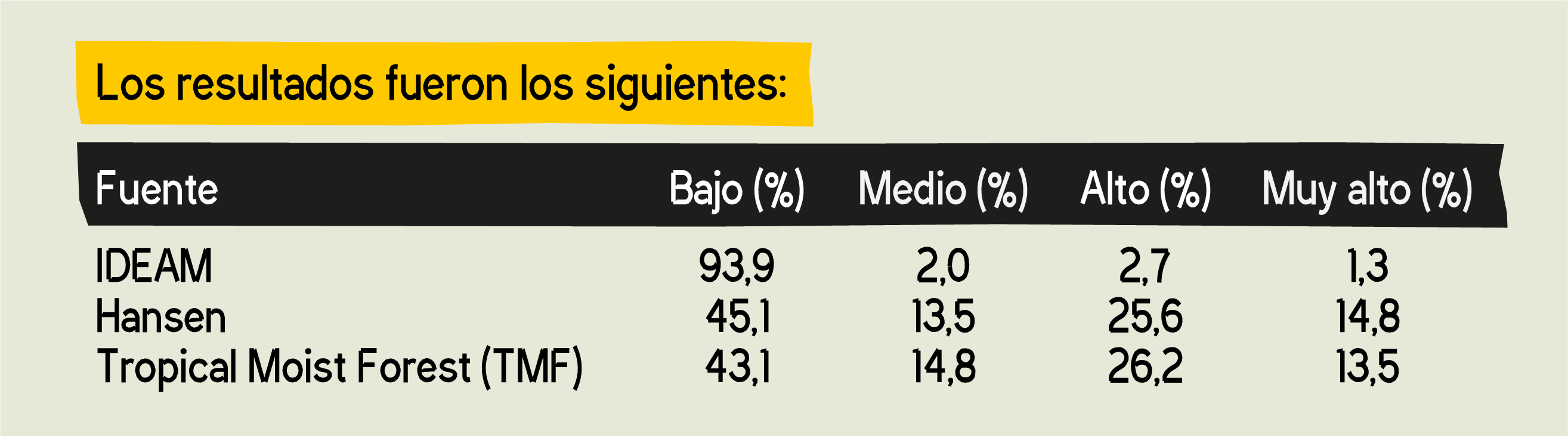 Adicionalmente, las plataformas internacionales Tropical Moist Forest (TMF) y Hansen sí identifican algunos niveles de riesgo moderado o alto, lo que resalta la importancia de corroborar y cruzar datos entre diferentes fuentes para afinar los criterios de análisis. Este paso será esencial para fortalecer los mecanismos de verificación de origen y trazabilidad que demanda la Regulación Europea (EUDR).
